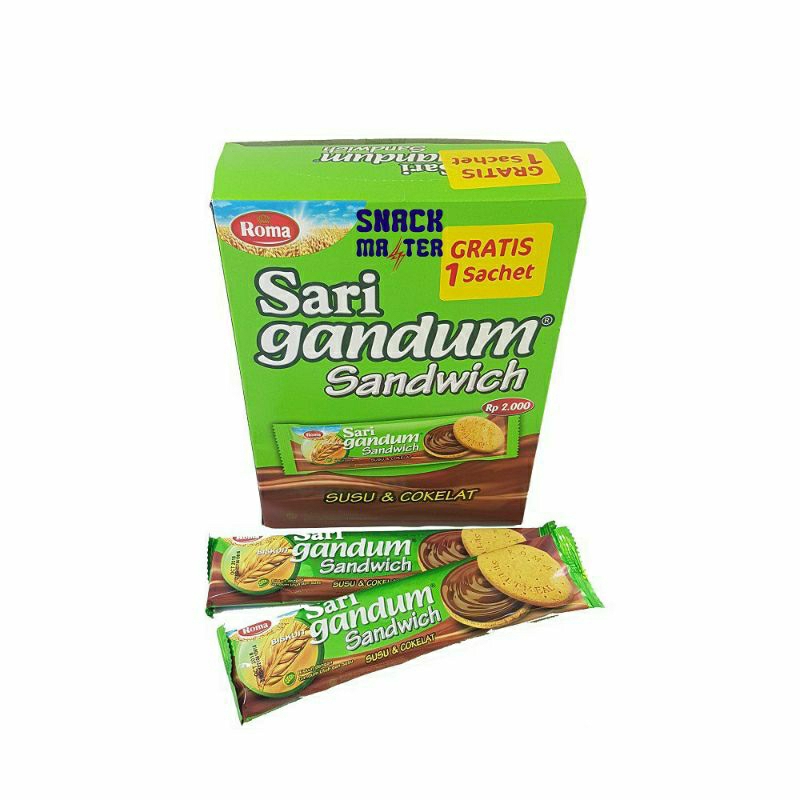 Roma Sari Gandum Sandwich Coklat 39 gram adalah biskuit sandwich yang terbuat dari gandum pilihan, susu, dan kaya vitamin. Berikut ini adalah beberapa deskripsi produk Roma Sari Gandum Sandwich Coklat 39 gram: