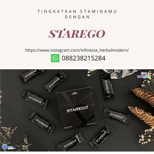 merupakan minuman herbal dengan rasa buah alpukat yang baik dan menyehatkan untuk dikonsumsi pria maupun wanita. Starego dibuat dengan bahan dasar berkualitas tinggi seperti White Ginseng, Saw Palmetto, Cordyceps serta bahan aktif berkualitas lainnya yang berkhasiat untuk menjaga kesehatan dan meningkatkan kebugaran serta stamina bagi pria maupun wanita.