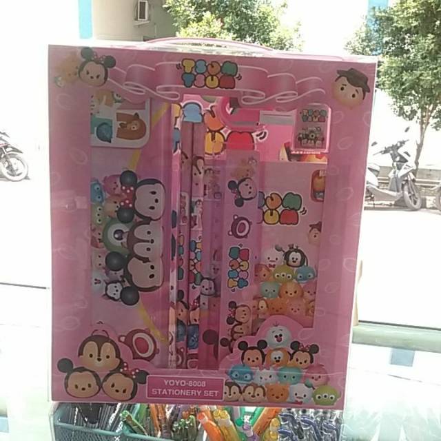 Stationery set terdiri dari tempat pensil 1pc , pensil kayu 2pc , penggaris 15cm 1pc , rautan 1pc , hapusan 1pc , notes 1pc , cocok untuk kado teman anda