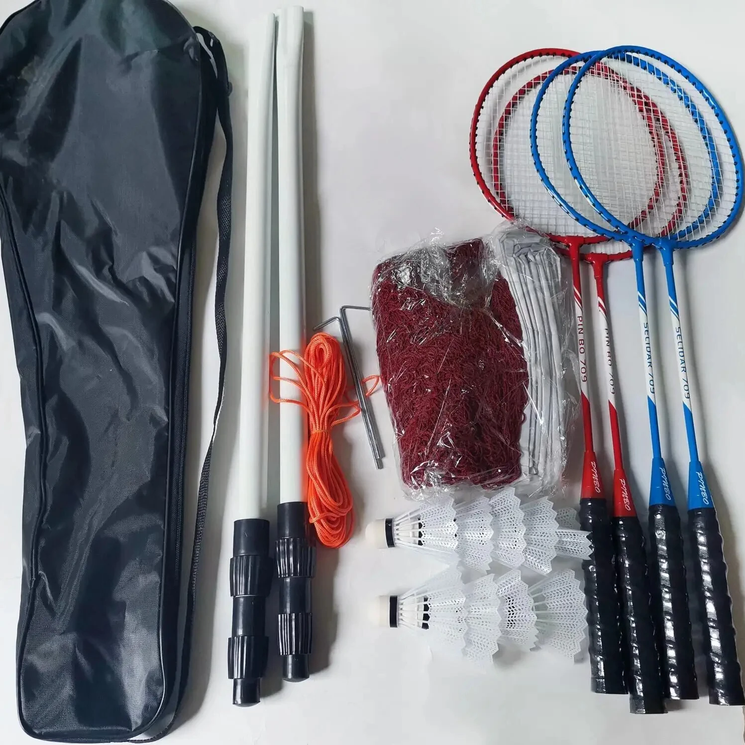 Steel Rackets Height-Adjustable Net Pole Ground Studs Shuttlecorks Included 4-Player Badminton Set for Family Law Backyard Game