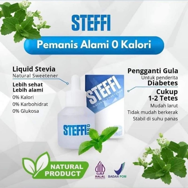 Steffi Pro adalah pengganti gula, pemanis alami 0 kalori dengan ekstrak daun Stevia Paraguay. Rasa manis dari Steffi Pro 300x lebih manis dari gula. Kelebihan Steffi Pro dibandingkan dg produk lain:
