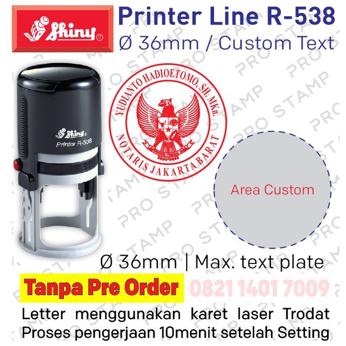 Stempel Shiny R538 / R-538 Custom Text Design Otomatis Dia 36mm