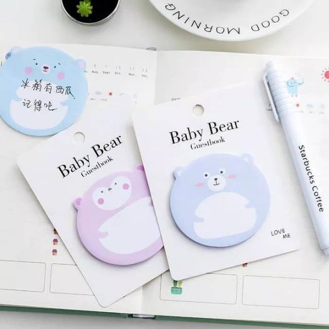 Kami hadirkan Stick Note Baby Bear ini Imut banget! Warnanya cerah, isinya sekitar 30 lembar, bahannya dari kertas, ukurannya pas untuk anda, bisa dibawa-bawa!
