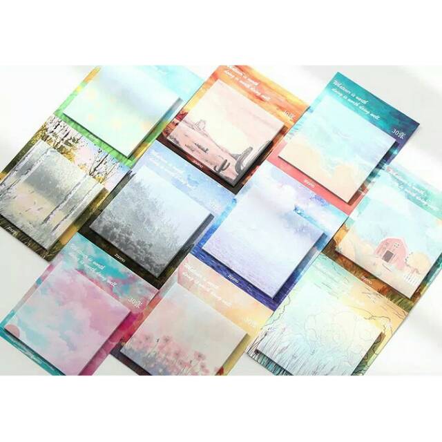 Stick note Nature Painting ini terbuat dari bahan kertas tebal, halus, dan berwarna.