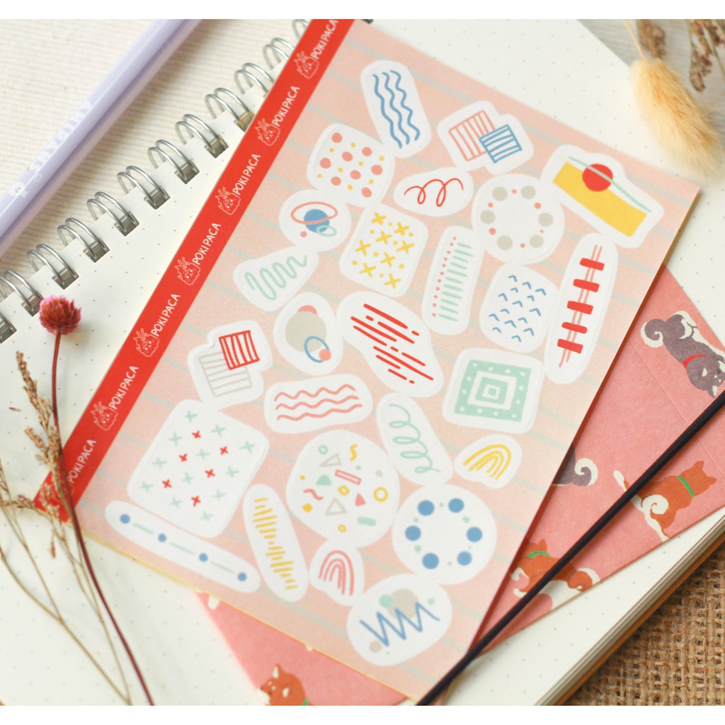 Sticker dengan ilustrasi cute aesthetic aneka bentuk abstrak yang cocok untuk DIY Journal, Planner, menghias cover buku, dan lain-lain karena sticker bersifat waterproof sehingga bisa ditempel dimanapun sesuai kreasi.