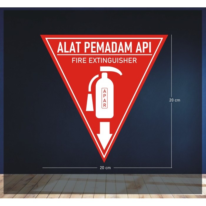 Sticker APAR (Alat Pemadam Kebakaran) bentuk segitiga warnah merah putih.