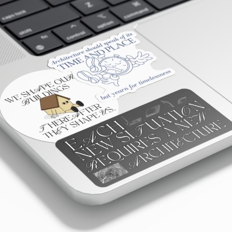 "We shape our buildings, thereafter they shape us" & "Architecture should speak of its time and place but yearn for timelessness" berukuran: 5 cm x 5 cm