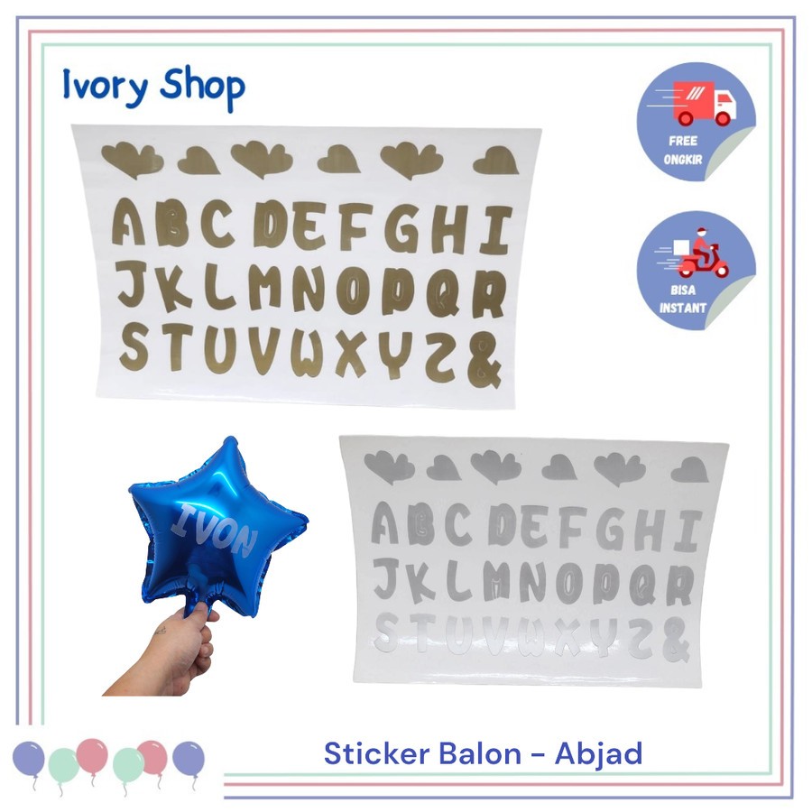 Sticker Balon PVC Abjad Gold Silver