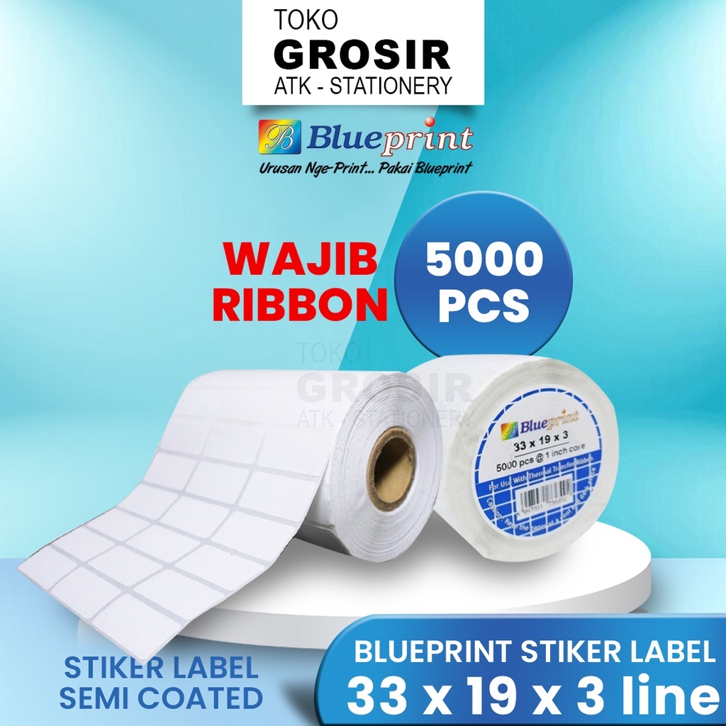 Sticker label Barcode 33x19mm 3 Line Semi Coated BLUEPRINT Core 1" isi 5000 Pcs