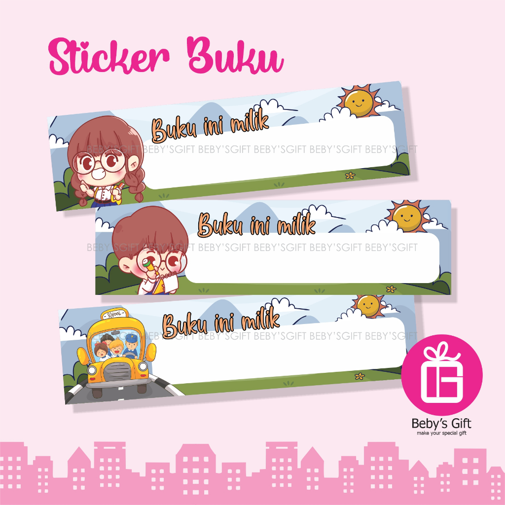 Sticker Buku (Tidak Bisa Custom) Stiker Label Karakter Anak Sekolah Bus