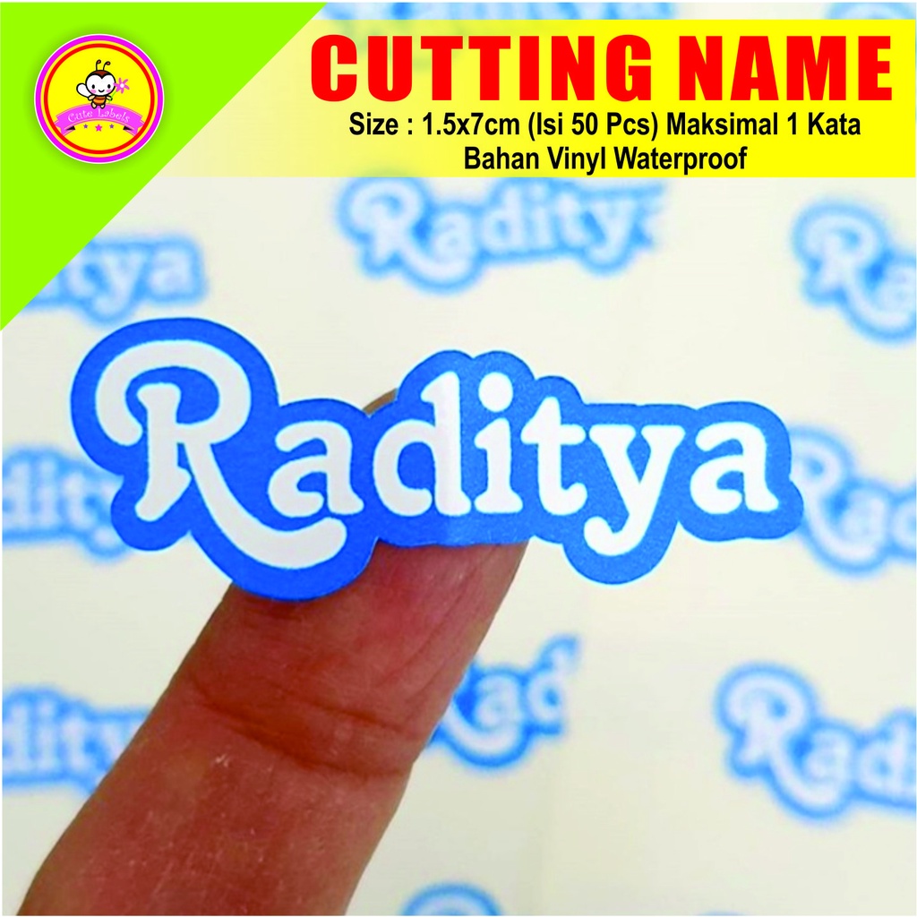 Neh ada label tipe lain lagi neh.. Cutting mengikuti huruf nama, bahan vynil waterproof Ritrama.