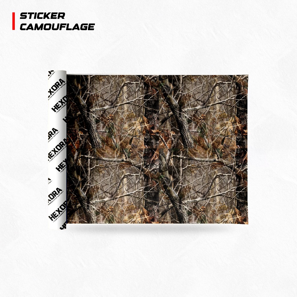 - Motif kamuflase hutan realistis, khas dunia perburuan.
