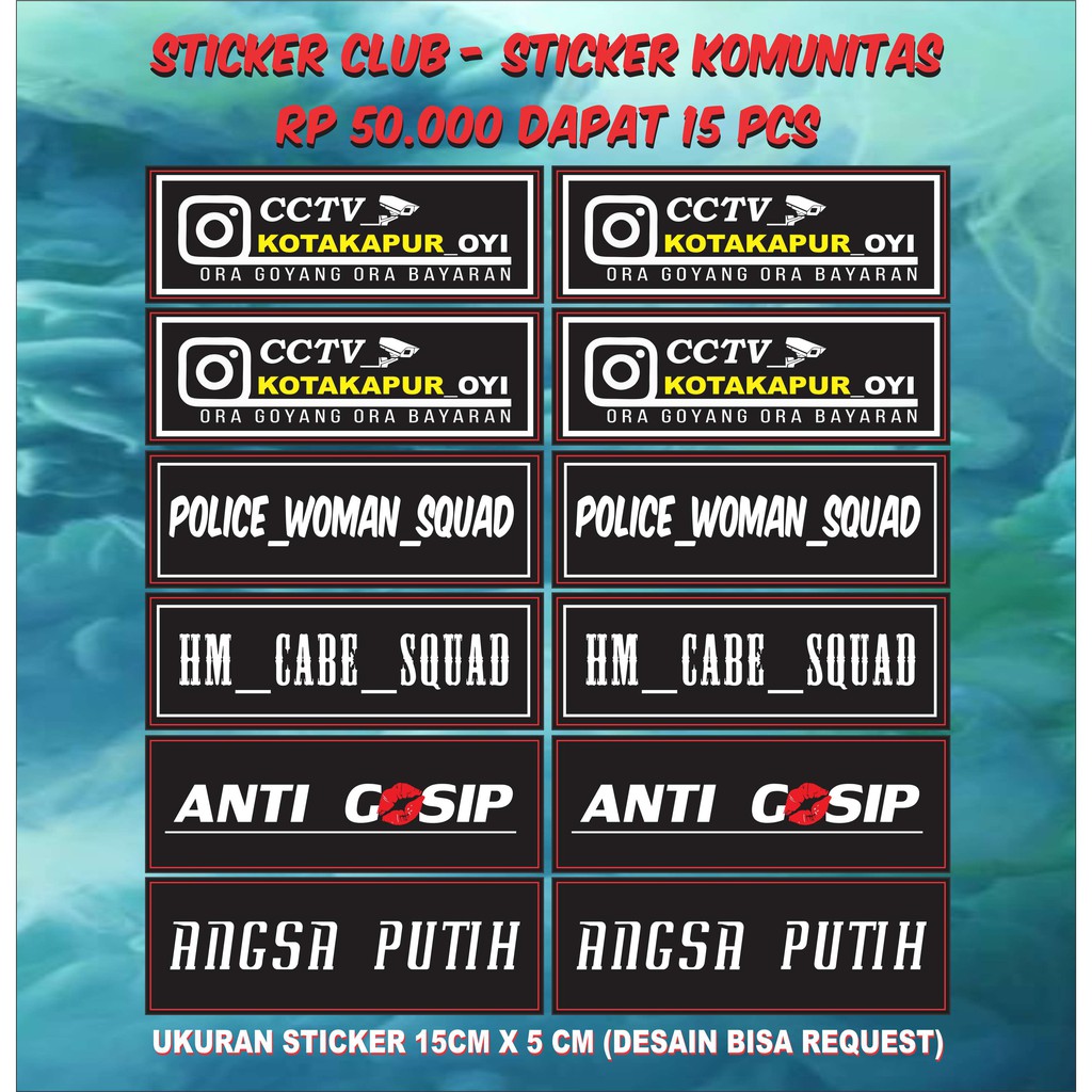 Sticker Club Sticker Komunitas Motif Custom 50k isi 15pcs