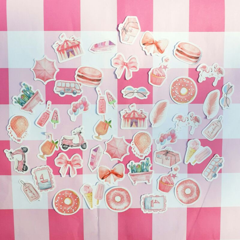 Sticker dengan motif lucu lucu dan serba berwarna pink sangat bagus untuk menghias pada journal , notes agar lebih berwarna dan bisa juga untuk menghias phone case.