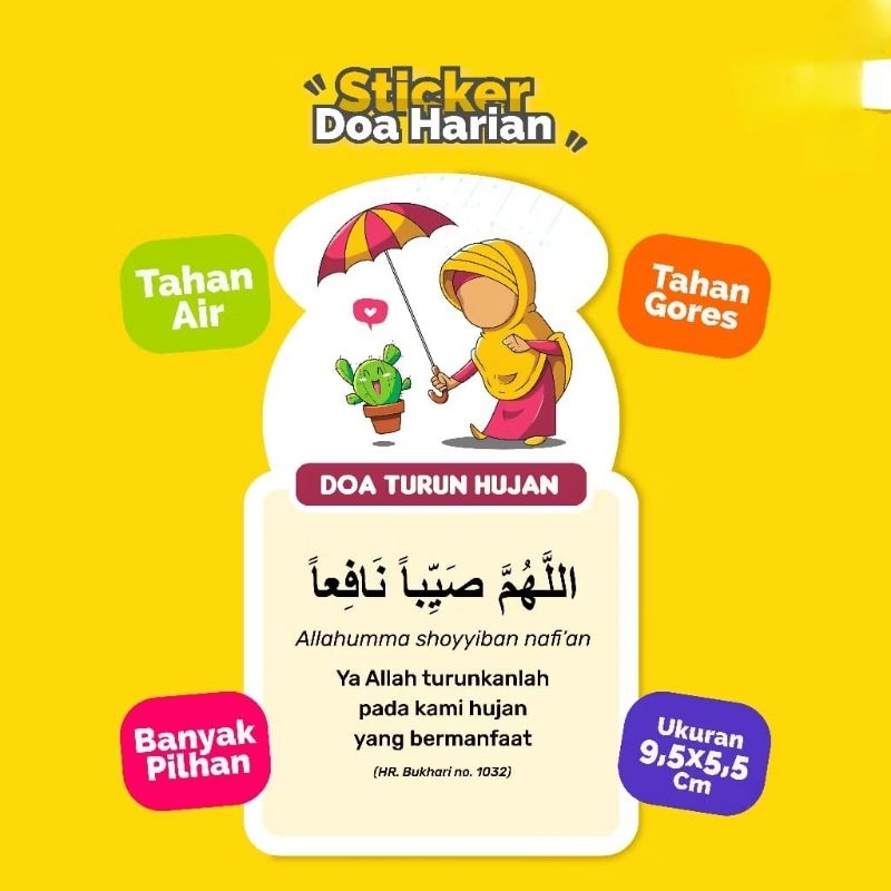 Sticker doa sehari hari bisa menambah semangat dan motivasi untuk selalu mengamalkan doa dan sekaligus menambah estetika benda ataupun ruangan anda.