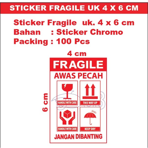 Sticker Fragile 4 X 6 Cm ( Isi = 100 Pcs )