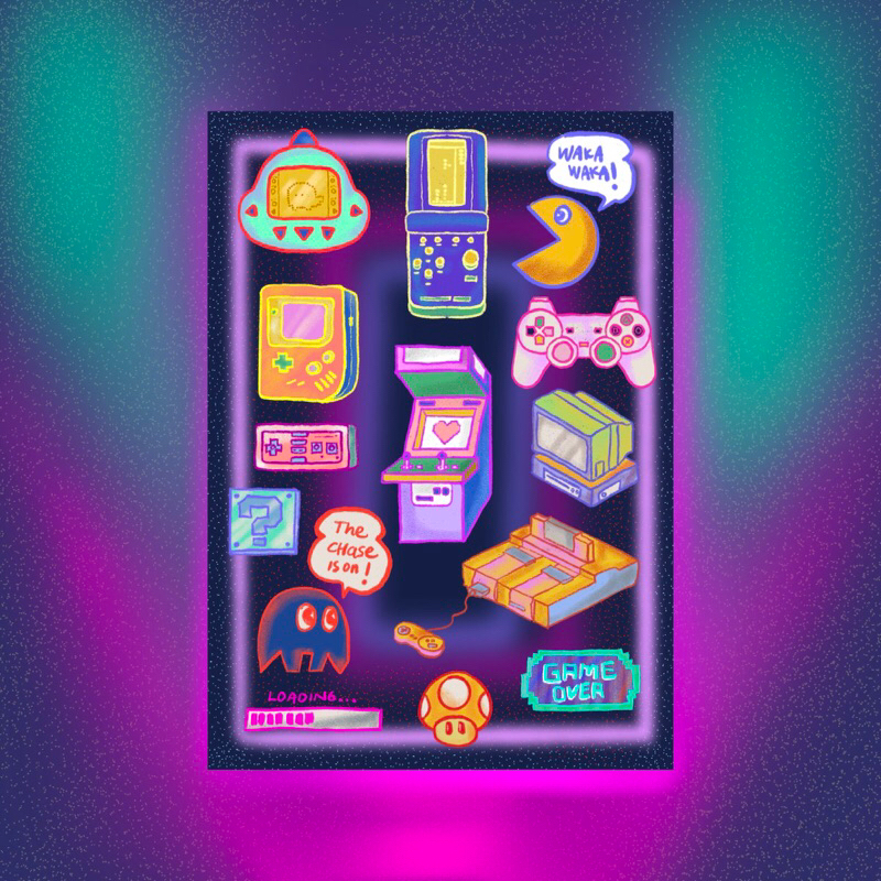 Sticker Gameboy merupakan sticker pack yg ukurannya A6 (10,5 x 14,8 cm) di kertas sticker vinyl gloss.