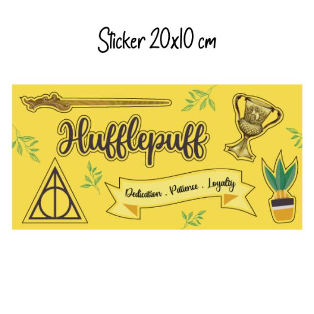Here is a 2D sticker filled with Hufflepuff stuffs like the cup of Hufflepuff, mandrake in a yellow pot, wand, deathly hallows symbol, ribbon, and handwriting title. Stick these sticker in places that you see often, to help you remember who you really are as a real Hufflepuff. Make sure you have these stickers sticked on your stuffsss