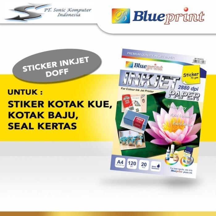 Sticker Inkjet Paper A4 BLUEPRINT Kertas Stiker Inkjet 70 Gsm Doff