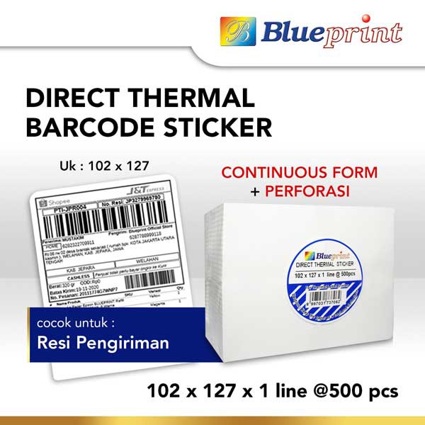 Sticker Label Direct Thermal BLUEPRINT 102x127 mm @500Pcs Continuous Form