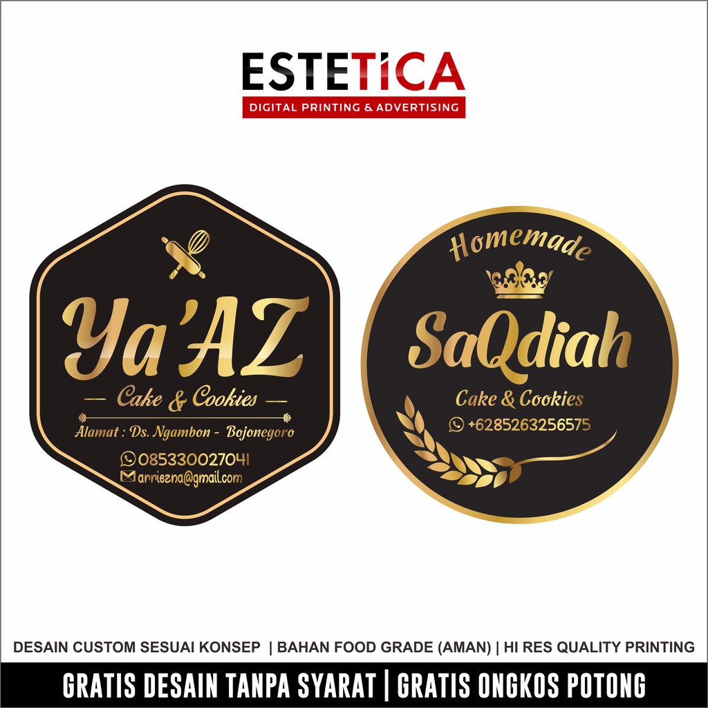 Sticker Label GOLD Effek, Sticker Toples, Sticker Kue Kering Custom
