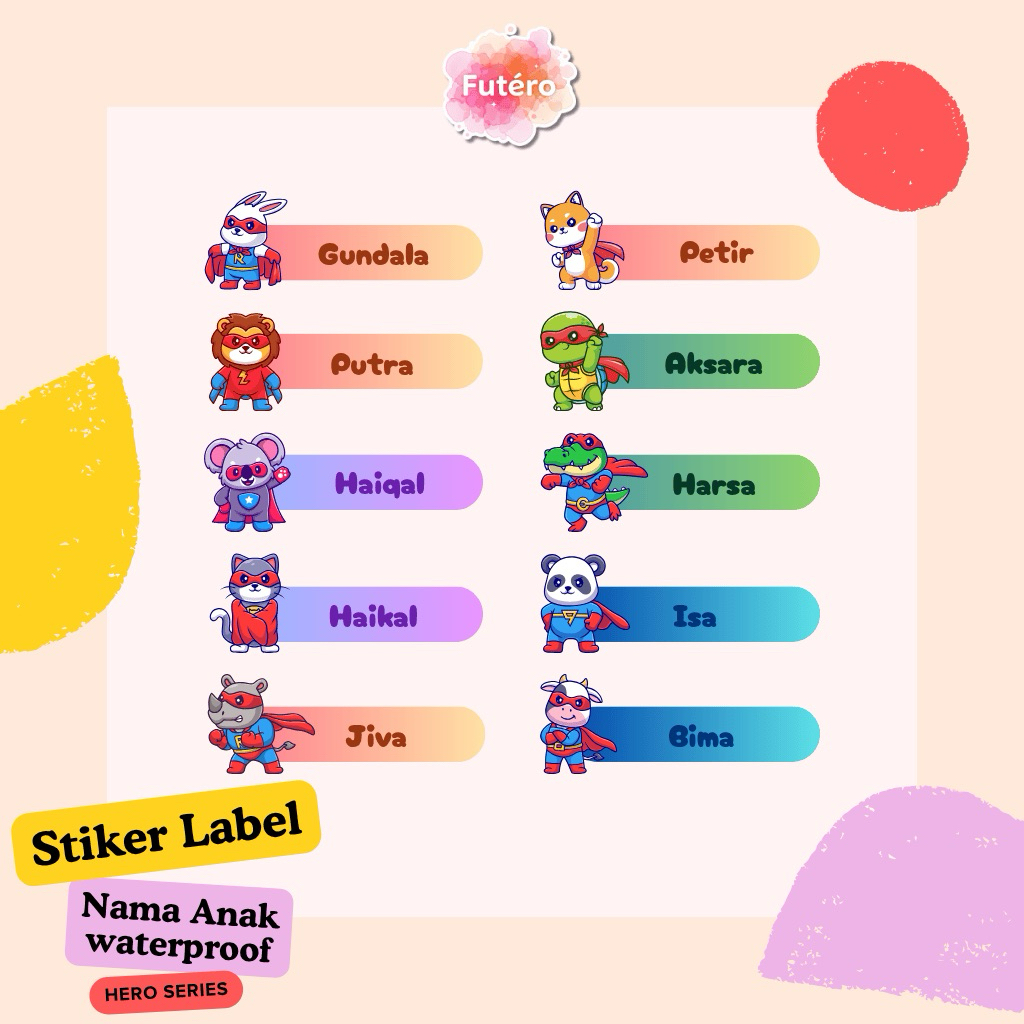 Sticker Label Nama Anak Waterproof Custom : Hero series