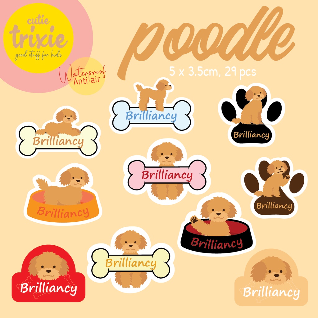 Sticker Label Nama Anak Waterproof POODLE