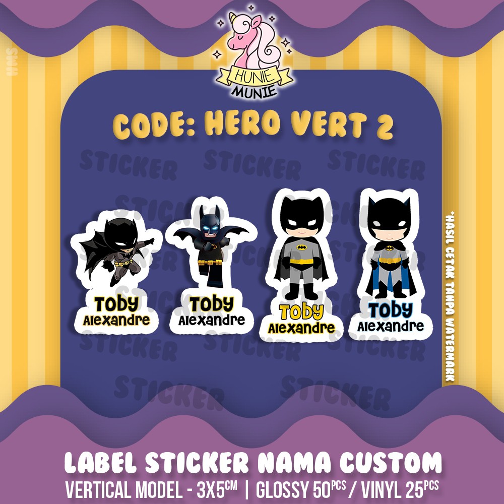 Sticker Label Nama Custom - Batman (Vertical Model) (50pcs) Stiker