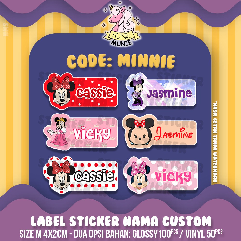 Sticker Label Nama Custom - Minnie Mouse (100pcs+) Stiker