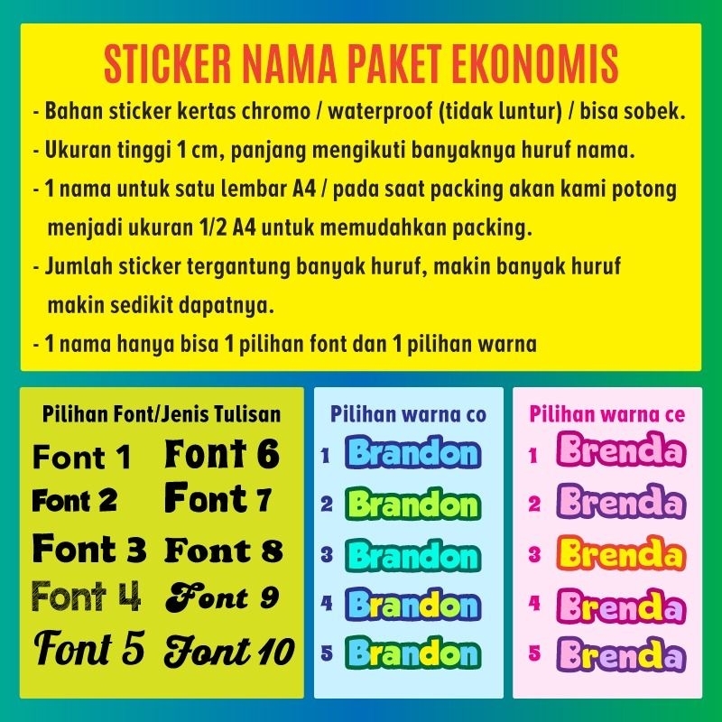 - 1 nama hanya bisa 1 pilihan font dan 1 pilihan warna