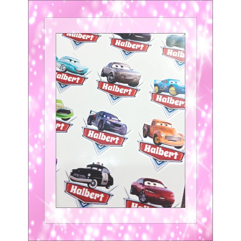 Sticker Label Nama Waterproof Karakter Lucu - Cars