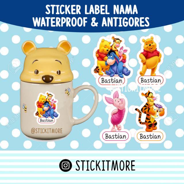 Sticker Label Nama Waterproof Winnie the Pooh & Friends