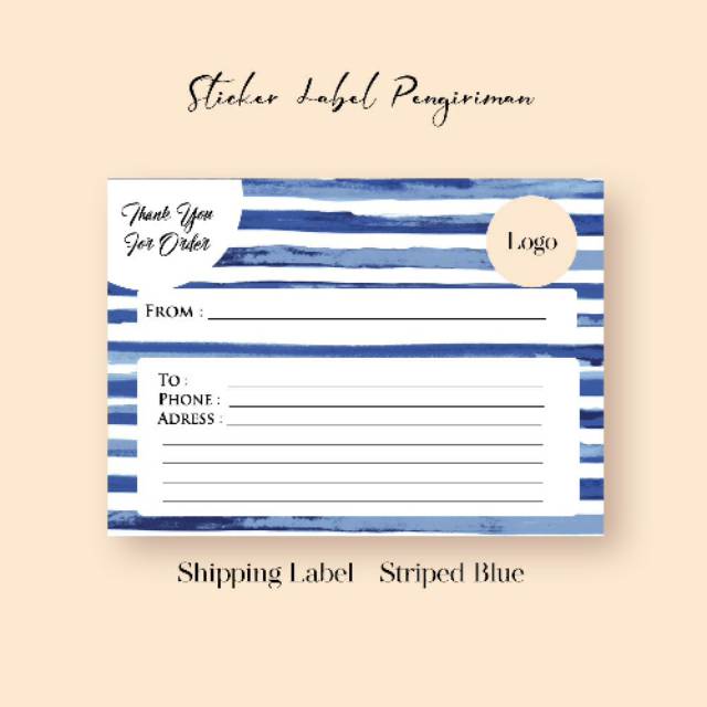Sticker Label Pengiriman Online Shop / Sticker Alamat - Striped Blue