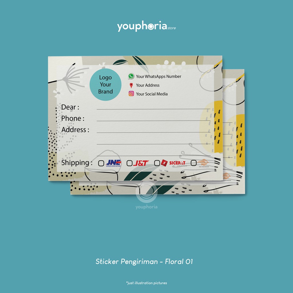 Sticker Label Pengiriman Online Shop Custom Seri Floral