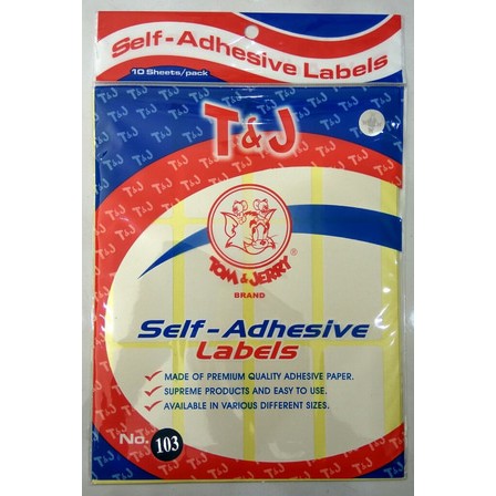 Self-Adhesive LabelsT&J atau lebih dikenal dengan stiker label Tom & Jerry No.103, biasa digunakan sebagai pengganti correction pen/tip-ex, lebih bersih dan tidak belepotan.