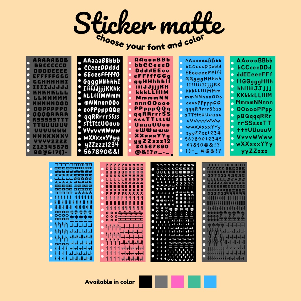 Sticker matte alphabet and hangul profix 9 fonts 5 colors