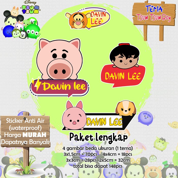 Sticker Nama Lucu/Custom/Cartoon/Waterproof - TSUM TSUM BOY 95pc