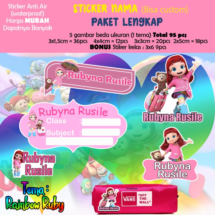 Sticker Nama Lucu/Custom/Kartun/Cartoon/Waterproof - RAINBOW RUBY 95pc