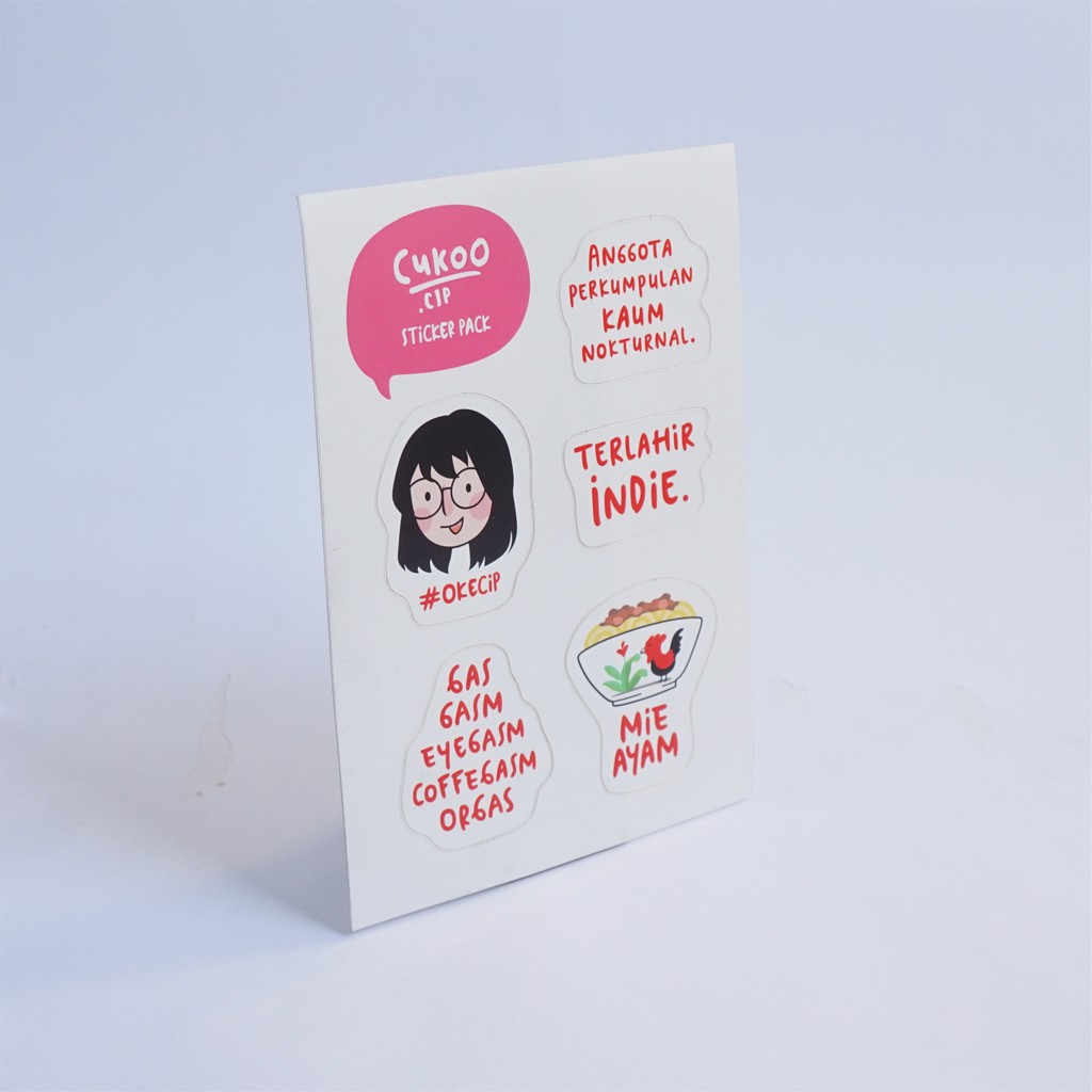 Sticker pack cukoo vol.1 berbahan waterproof yang dapat kamu tempelkan pada leptop, buku dan benda-benda lainnya sehingga aman untuk cuaca panas dan hujan.