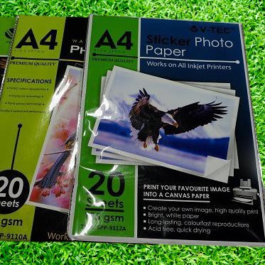 Kertas sticker permukaan halus mengkilat. Bisa di cetak menggunakan printer rumahan praktis