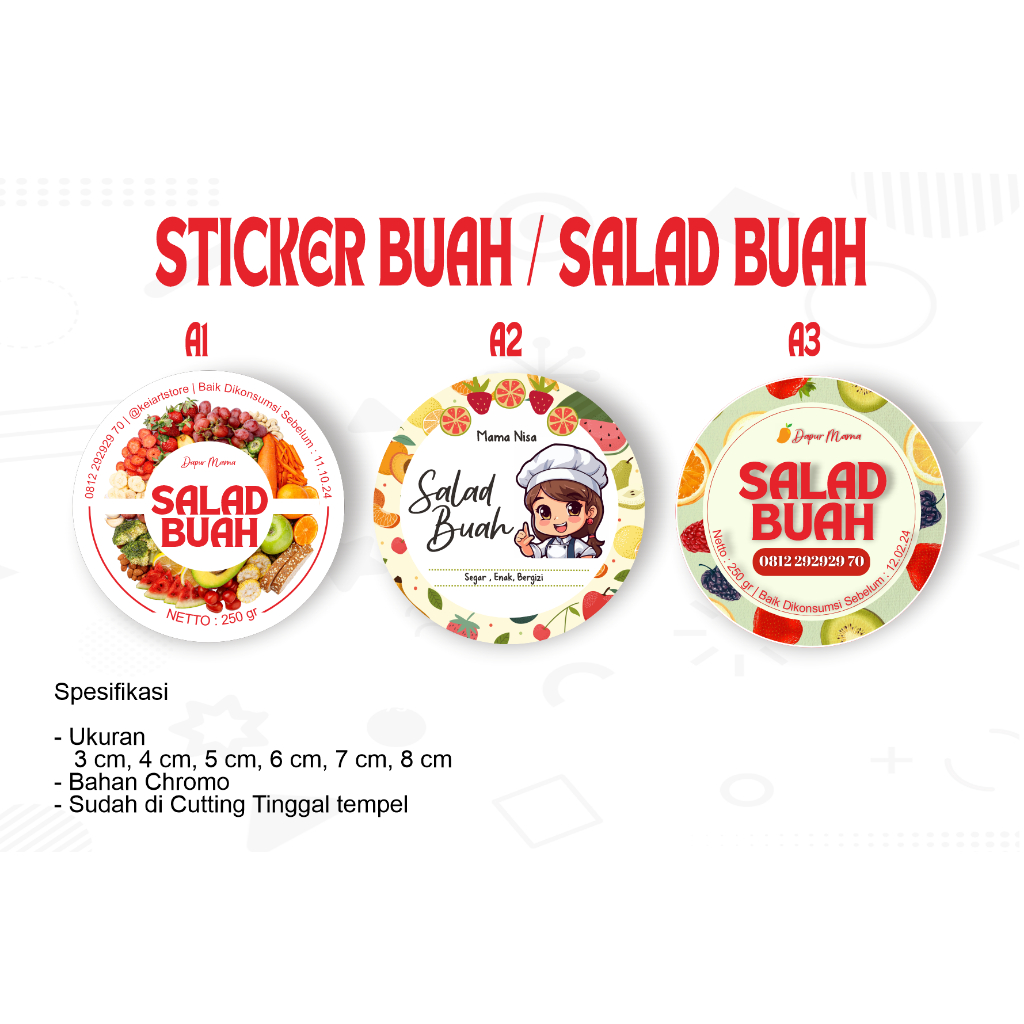 berikut ini spesifikasi produk sticker label salad buah :