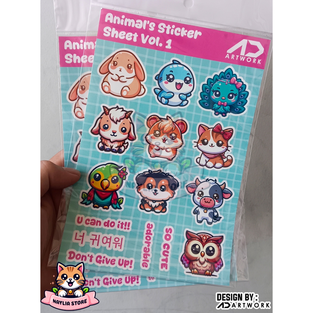 Sticker Sheet Hewan Hewan Lucu Waterproof