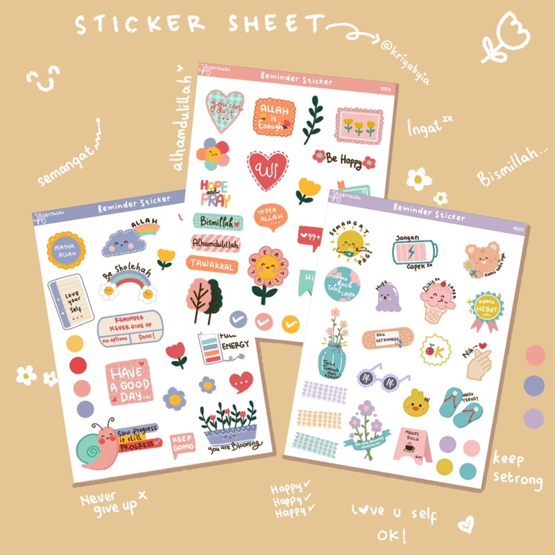 Sticker Sheet Kriyabyia bisa kalian tempel di hp, laptop, notebook, tumblr atau buat yang suka jurnaling boleh banget yah
