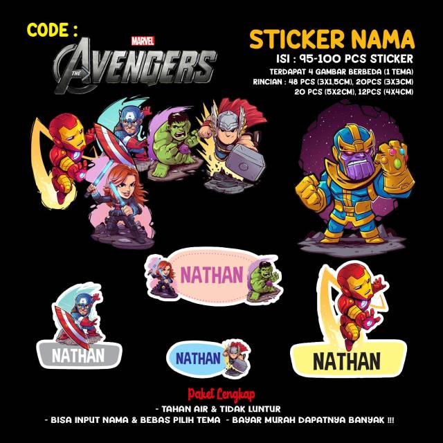 Sticker / Stiker Label Nama Karakter Tema AVENGERS / AVENGER / MARVEL