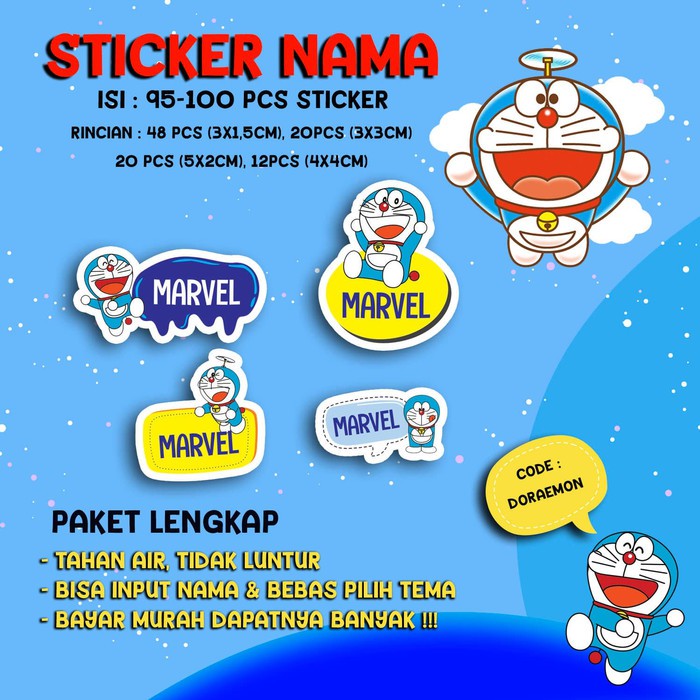 Sticker / Stiker Label Nama Karakter Tema DORAEMON