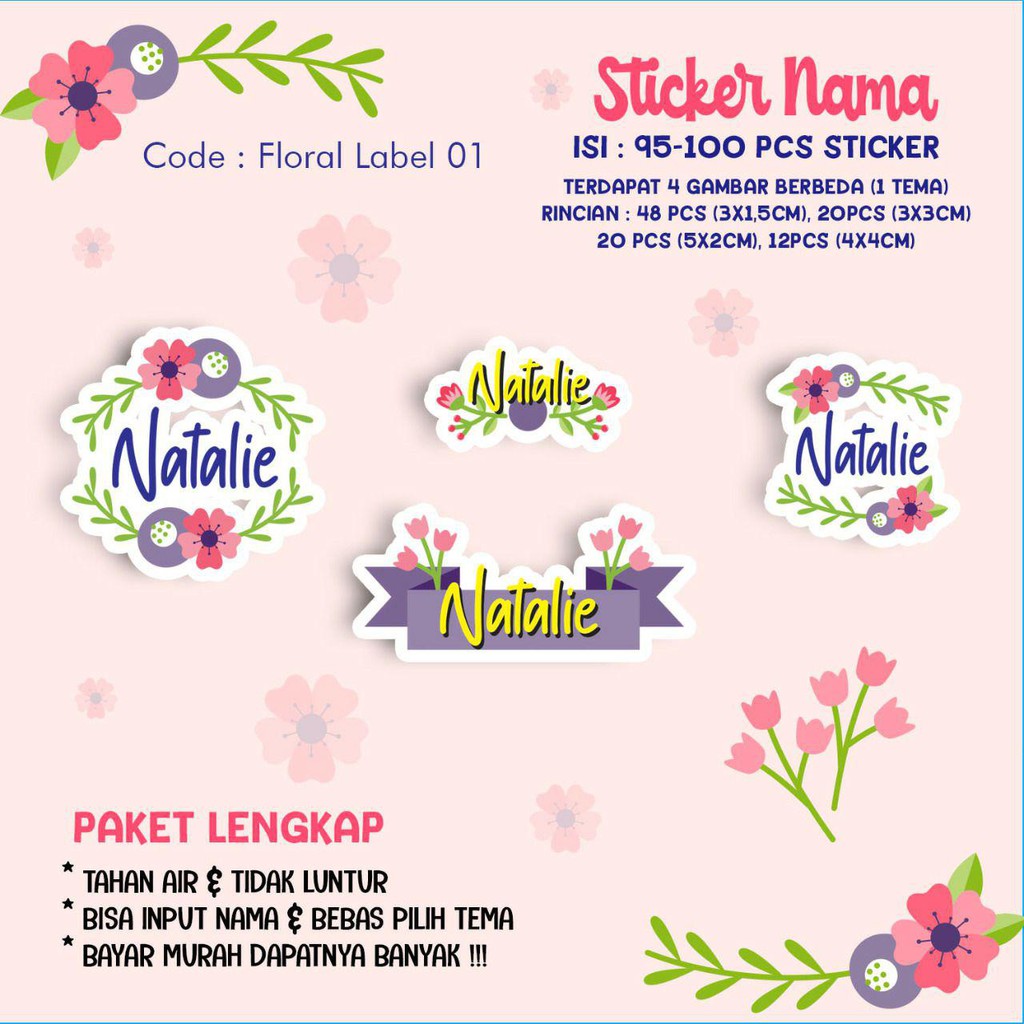Sticker / Stiker Label Nama Karakter Tema FLORAL BUNGA
