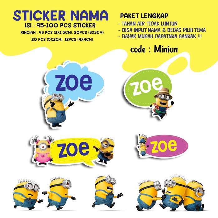 Sticker / Stiker Label Nama Karakter Tema MINIONS