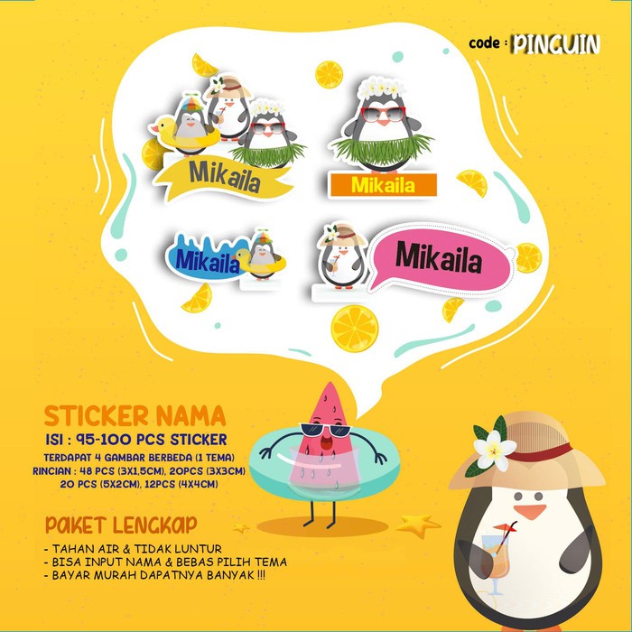 Sticker / Stiker Label Nama Karakter Tema PINGUIN