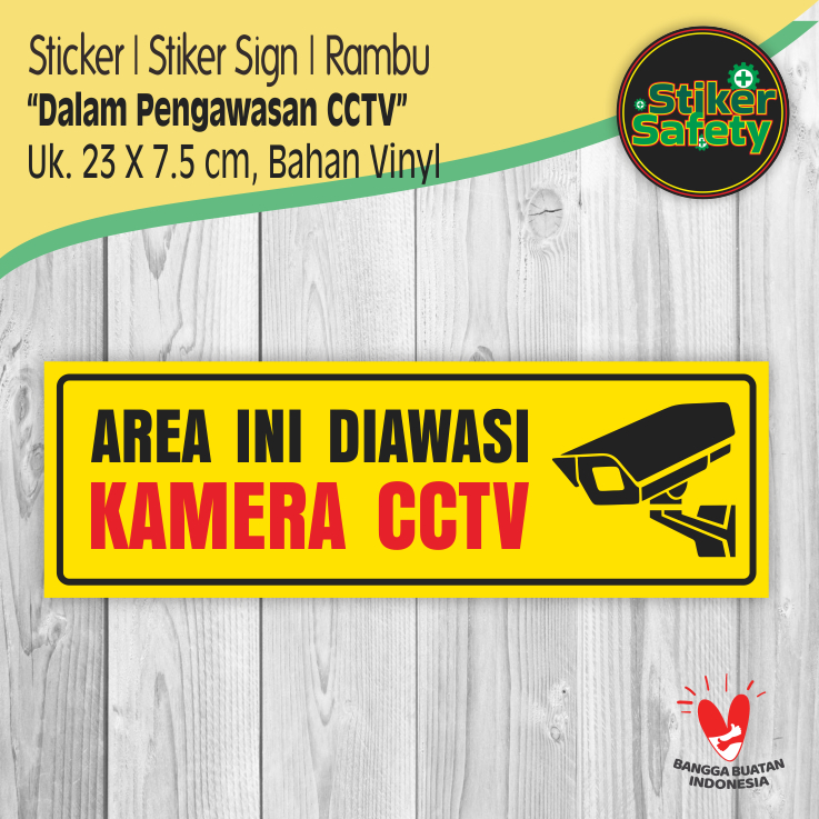 Sticker Stiker Sign Rambu Area Ini Diawasi Kamera CCTV - Uk. 23x7.5 cm