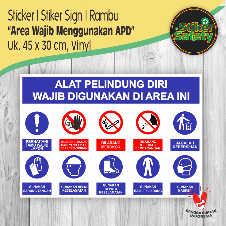 Sticker Stiker Sign Rambu | Area Wajib Menggunakan Alat Pelindung Diri | APD